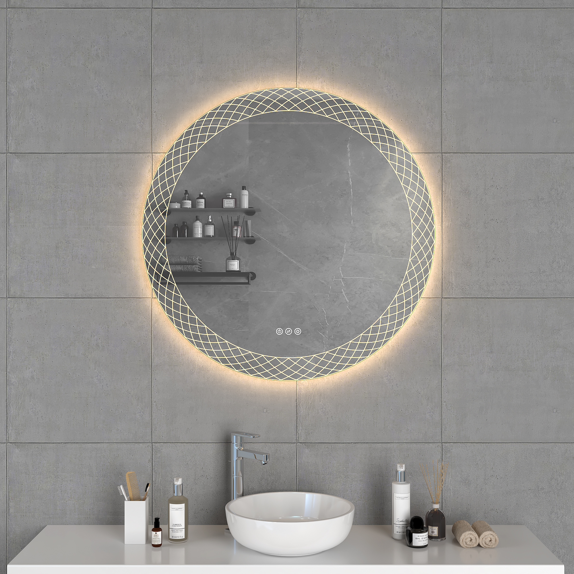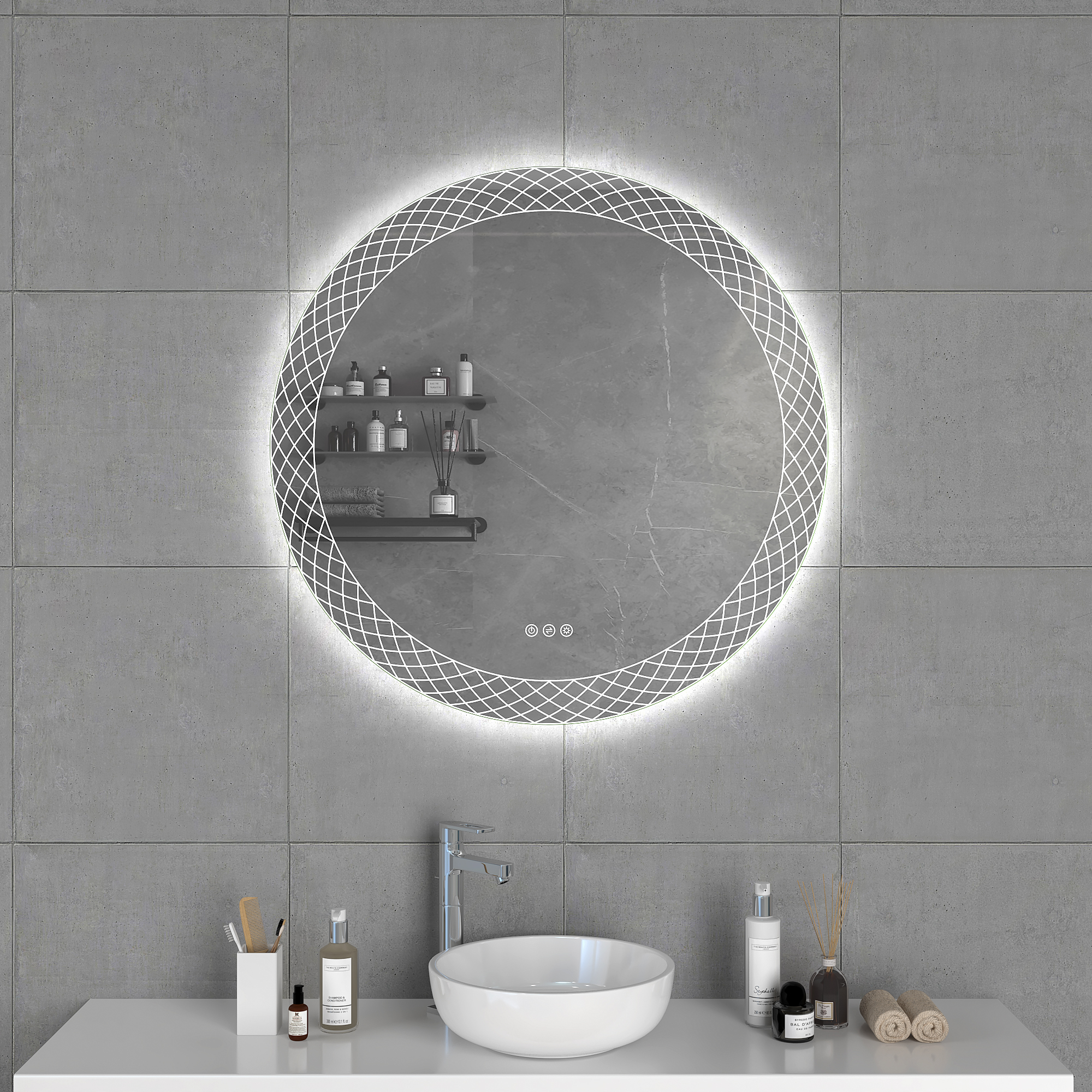 Previous Product Next Product SCARLETTSPECIFICATIONS5mm Copper free mirror with safety film backLED color temperature changing 2700-6500KAcrylic Diffused LED lightThree Key Touch switchSize: W800 X H800 X D30 mm Category: Reflections Opens in a new window Tweet This Product Opens in a new window Share on Facebook Opens in a new window Pin This Product Opens in a new window Mail This Product Related products Quick View Quick ViewSELENE Quick View Quick ViewERIS Quick View Quick ViewAchilles Quick View Quick ViewHYLOS Quick View Quick ViewAthena